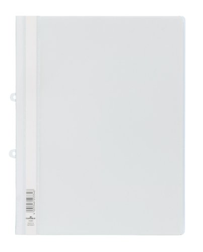 Durable 258002 - Cartellina Clear View, occhielli per archiviazione, f.to A4+, fronte trasparente e retro colorato, bianco, confezione da 25 pezzi