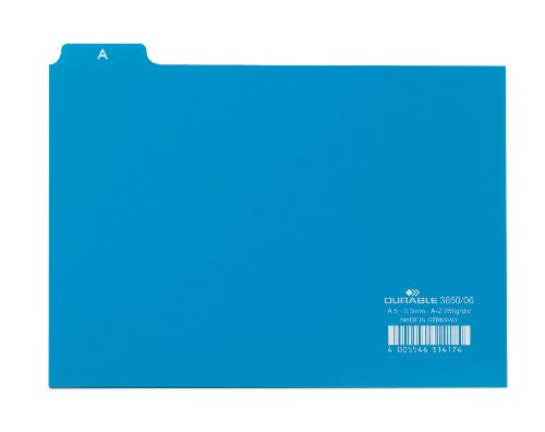 Durable 365006 - Divisore Alfabetico Per Schedario, Formato A5, Con Etichette Prestampate (A-Z), Blu, Confezione Da 25 Pezzi