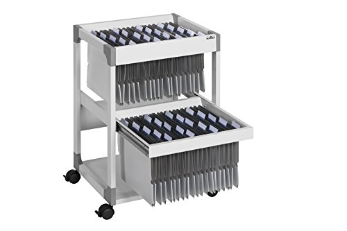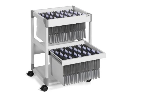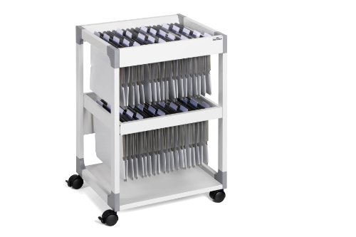 Durable 379110 - Carrello per Documenti, Acciaio AntiGraffio, Due telai, per cartelle sospese, raccoglitori sospesi a Leva, 487x715x432 mm, Grigio