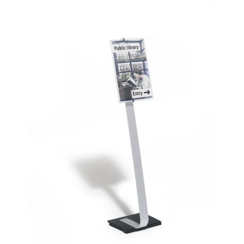 Espositore da pavimento CRYSTAL SIGN, per formato UNI A3, alluminio. Fornitura = smontato. Formato = UNI A3. Altezza = 1250 mm. Larghezza = 438 mm. Profondità = 215 mm. Materiale telaio = alluminio. Colore telaio = alluminio. Tipo di prodotto = supporti informativi da pavimento. Elegante espositore da pavimento di alta qualità in acrilico/alluminio. Il pannello trasparente, lucido sui bordi conferisce a CRYSTAL SIGN il suo aspetto estetico unico. Il pannello ha un comodo angolo visivo di 10 gradi, può essere facilmente ruotato dalla posizione verticale a quella orizzontale ed è regolabile in altezza. Il pesante basamento in ghisa con cuscinetti in gomma assicura un'ottima stabilità. Altezza A3 orizzontale/verticale: 1,20 m e 1,25 m. Viene consegnato smontato. Montaggio semplice.