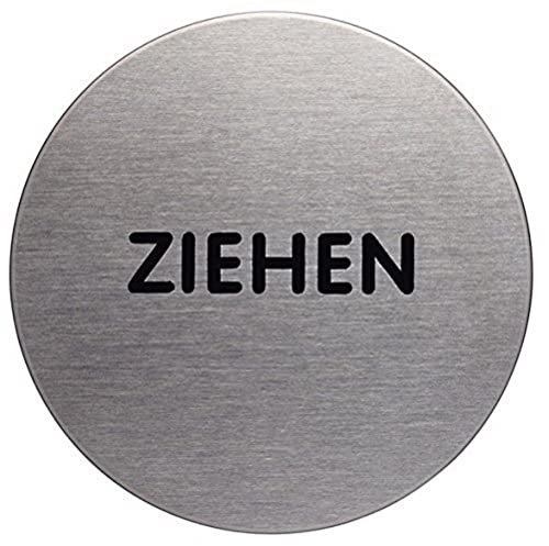 Durable 490161 - Pittogramma tondo, adesivo, con scritta serigrafataZiehen, acciaio inossidabile, diametro 83 mm, argento metallizzato