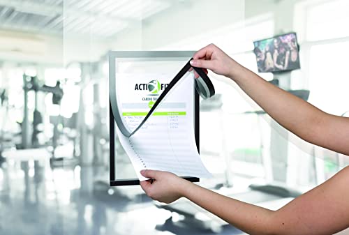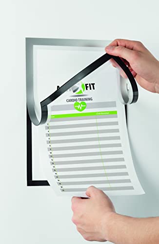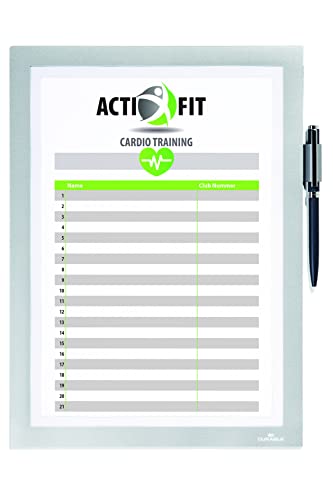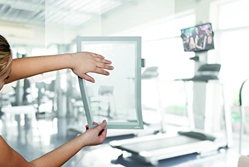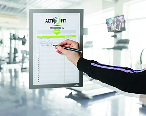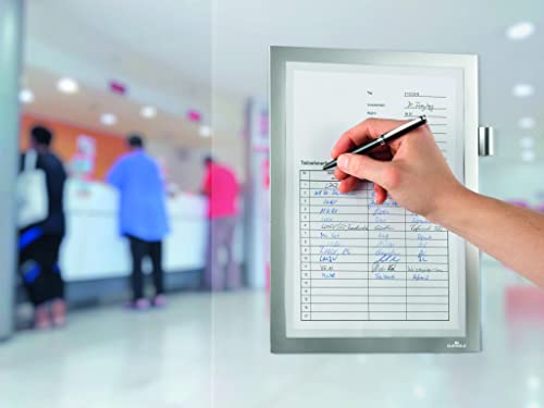 Durable 499323 - Duraframe Note, Cornice Espositiva Adesiva per la Scrittura Diretta sull'Inserto, PortaPenne, Formato A4, Argento Metallizzato
