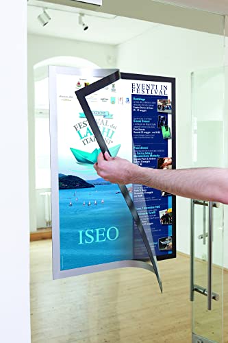 Cornice informativa autoadesiva con frontale magnetico incernierato per un facile cambio di poster e cartelloni pubblicitari
