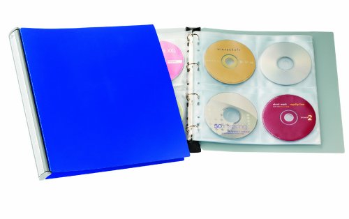 Durable 527723 - CD/DVD Album 96, Album ad Anelli con 12 Buste per 96 CD/DVD, Porta Etichetta sul Dorso, Argento/Blu