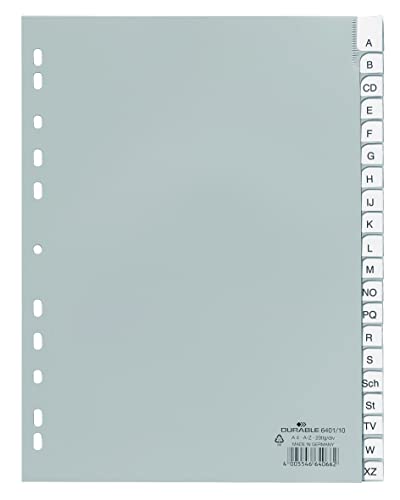 Durable 640110 - Divisorio con cavalierini termosaldati e set di etichette stampate e preinserite A-Z, f.to A4, 20 tasti, foratura universale, grigio