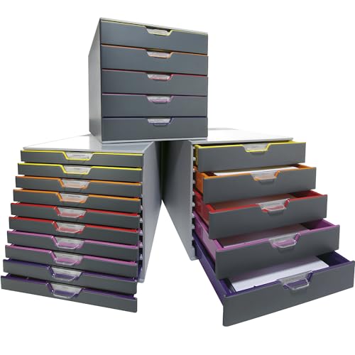 Cassettiera da scrivania Durable cod, 761027 con 10 cassetti, realizzata in robusta plastica ABS, Colori dei cassetti 2x giallo, 2x arancione, 2x rosso, 2x rosa, 2x viola
