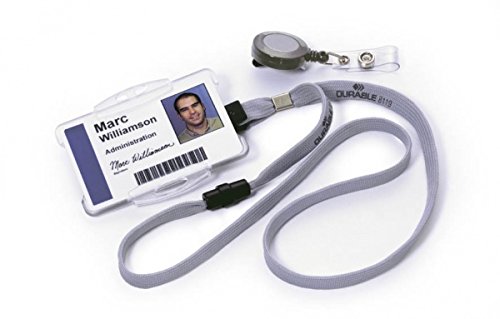 Durable 811910 - Cordoncino in Tessuto, Clip per Combinazione con i Portanome con Asola, Larghezza 10 mm, Lunghezza 44 cm, Grigio, Confezione da 10 Pezzi