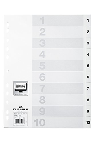 Durable Hunke & Jochheim divisori in polipropilene, numerato 1 - 10, bianco, DIN A4, 230 x 297 mm, 215/10