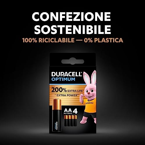 CONFEZIONE 100% RICICLABILE: La confezione di Duracell Optimum è riciclabile al 100% e realizzata con lo 0% di plastica.