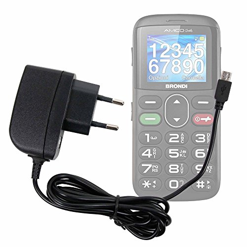 DURAGADGET Caricatore Da Muro compatibile con Telefono Cellulare Doro Primo 405 | Brondi Amico Semplice | Alcatel One Touch 1016D | Trevi Sicuro 10 - Spina Europea E Connessione MicroUSB