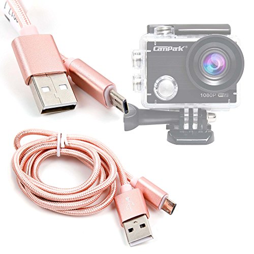 DURAGADGET Cavo Di Carica / Sincronizzazione Per action camera Rollei SI 360 | BUIEJDOG Ultra Full HD WIFI Action Camera 170 ° | Campark ACT68 | DBPOWER N5 4K Action Camera - Connessione USB - MicroUSB - Colore Rosa Gold