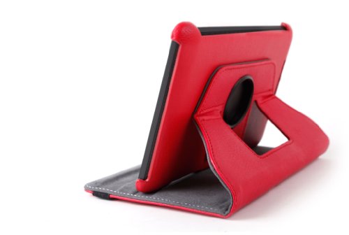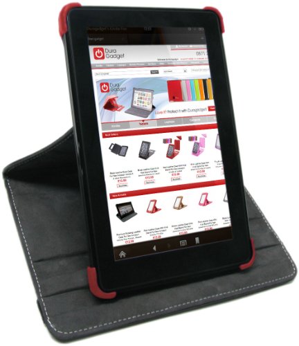 DURAGADGET Custodia Di Vera Pelle Color Rosso Con Base Rotante/Proteggi-schermo con Supporto Regolabile Per Amazon Kindle Fire HD 7"