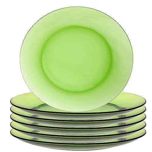 Duralex Collection Lys | Piatto piano in vetro colore verde 23,5 cm | Set di 6 pezzi | Vetro ultra resistente compatibile Lavastoviglie, Made in France
