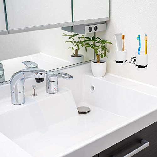 DURANTEY Bicchiere Porta Spazzolini Porta Spazzolino Doppio con Due Bicchiere Portaspazzolino da Muro Supporto Rotondo Porta Dentifricio Doppio per Lavabo, Bagno