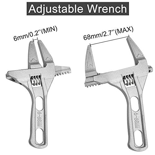 【Design ad ampia apertura】Questa chiave in alluminio robusta e leggera adotta un design ad ampia apertura con ganasce regolabili, che possono essere regolate in base alle esigenze. La lunghezza di apertura è compresa tra 6 e 68 mm, che può lavorare rapidamente e facilmente in spazi ristretti.