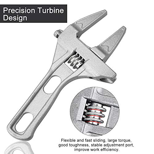 【Materiale in lega di alluminio premium】La chiave regolabile è realizzata in lega di alluminio di alta qualità, resistente, antiruggine e anticorrosiva. Ha anche una forte forza di serraggio. Il trattamento termico complessivo ha una buona tenacità, coppia elevata e leggerezza. Sono i tuoi strumenti domestici ideali.