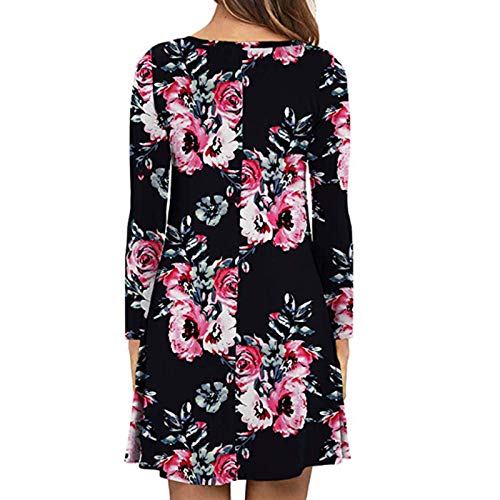 Durio Abito semplice da donna, basic, casual, linea ad A, per il tempo libero, a maniche lunghe, casual, girocollo, tunica