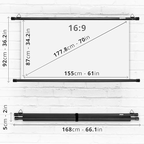 Duronic BPS70 16/9 Schermo di proiezione 70” formato 16:9/155 x 87 cm telo proiettore telo da proiezione Barra a gancio per esterni ed interni Full HD 3D 4K - Home cinema home theater ufficio