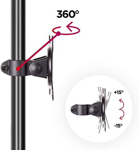 CARATTERISTICHE E SPECIFICHE: Questo modello è dotato di un attacco VESA che può ruotare di 180 °, inclinarsi di -15 ° / + 15 ° e ruotare di 360 °. Altezza della staffa: 40 cm. Portata massima: 8 kg. Colore: nero. Materiale: acciaio. I fissaggi sono inclusi. Se si necessita di una staffa più lunga, un braccio o un attacco VESA extra, possono essere acquistati separatamente. Nella confezione è