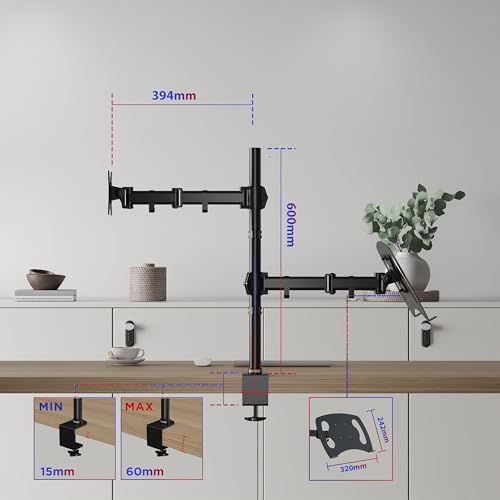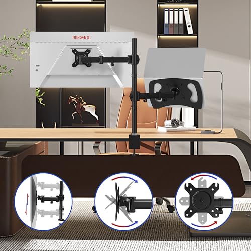 Duronic DM25L1X1 Supporto monitor da scrivania con morsetto e piattaforma per PC portatile - Braccio porta monitor Inclinabile ed orientabile - Compatibile con schermi TV per VESA standard