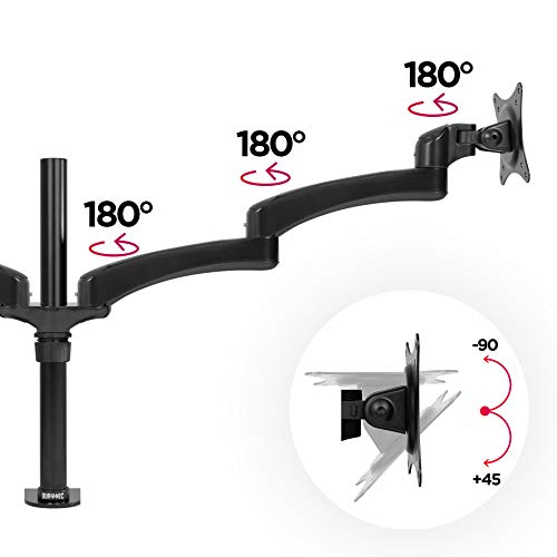 REGOLAZIONE FLESSIBILI: un normale supporto per monitor di solito non può essere regolato in altezza o rotare per adeguarsi alle esigenze dell'utente. Con i supporti monitor di Duronic, i monitor possono essere regolati a un'altezza ergonomica e allineati in modo flessibile. Con il DM452, gli schermi possono essere ruotato di 360° e inclinati da -90° a +45°. Inoltre, i bracci possono anche essere ruotati di 180°, permettendo di allineare gli schermi alle proprie esigenze.