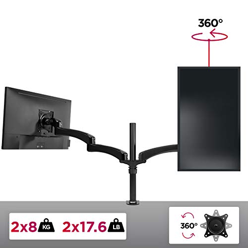 Duronic DM452 BK Supporto Monitor doppio per 2 schermi da 15-27 pollici, Braccio monitor PC ergonomico fino 8kg, VESA 75/100mm, regolabile altezza inclinazione girevole, per ufficio casa scuola, nero