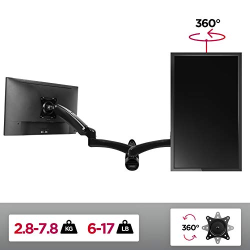 Questo supporto ha una distanza di 412mm dal muro permette un movimento verticale da +/- 45°, un movimento orizzontale di 180° e una rotazione a 360° dello schermo, con possibilità di poterlo inclinare da -95° a +85° . E' molto semplice spostare il monitor senza la necessità di utilizzare ulteriori strumenti. E' possibile regolare la tensione della molla per adattare l'altezza del monitor in base alle vostre necessità.
