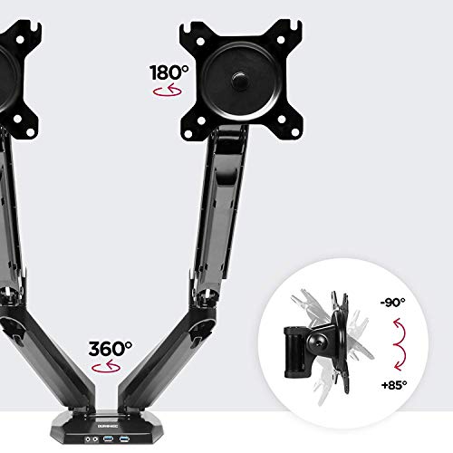 Duronic DMUSB5X2 Supporto Monitor per 2 schermi 13” - 27” - 8 kg per Braccio - Altezza Regolabile Fino a 50cm - Inclinazione Schermo -90°/+85° - Bracci con Molla a Gas - Base con Presa Jack/USB