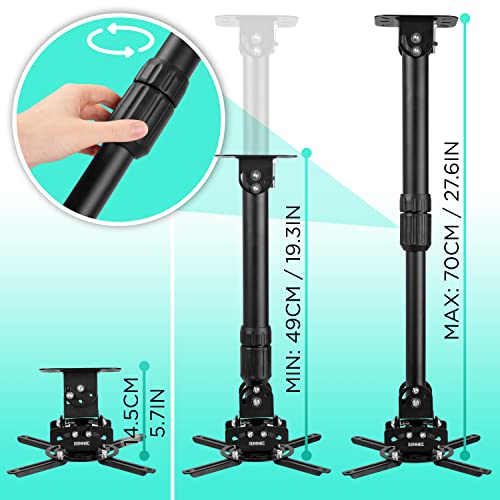 Duronic PB04XL - Supporto per proiettore da soffitto, girevole a 360°, inclinabile a 90°, girevole a 40°, carico massimo di 13,6 kg, braccio estensibile, ideale per home cinema presentazioni