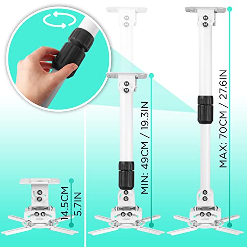 I supporti proiettore a soffitto e da parete sono stati fabbricati con materiali durevoli e di alta qualità per assicurare che siano resistenti e duraturi una volta montati. Questo supporto universale per proiettore potrà sorreggere qualsiasi proiettore che abbia la possibilità di essere montato su una staffa. Inoltre, la portata massima di questo supporto è di 13.6kg.