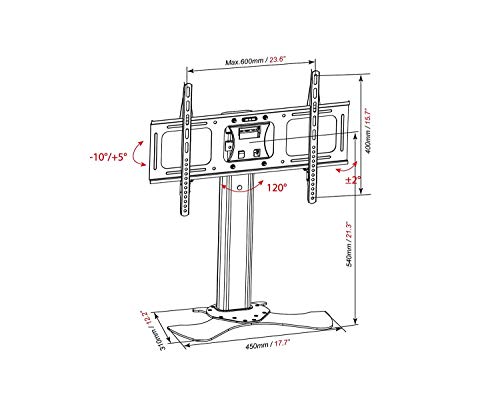 Compatibile Con TV/monitor da 30" a 50". Si prega di misurare lo schermo per assicurarsi che le dimensioni dello stesso siano siano più grandi del supporto. Inoltre, assicurarsi che la TV abbia le misure VESA pari o infgeriori a 400 x 400 mm.