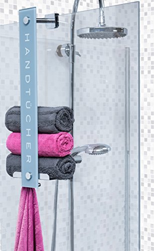 Duschmeister Portasciugamani DMHT08, Design pratico per riporre fino a 8 asciugamani, sbarra in vetro con mensolina in metallo