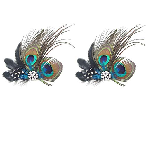Dusenly 2 forcine per capelli alla moda con piume di pavone, per abiti da sera, copricapo e piume, per donne e ragazze
