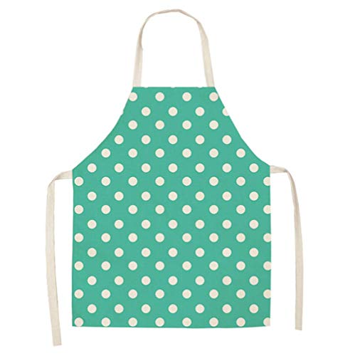 Dusenly Grembiule da donna a pois, impermeabile, grembiule da cucina in cotone e lino, per cucina, griglia, cottura e cottura (verde)
