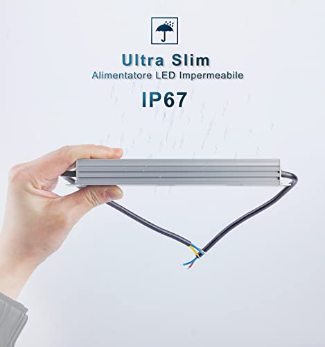 【Protezione】 Driver LED impermeabile certificato IP67. Per lampade a LED a bassa tensione 12Vdc. L'affidabile circuito interno fornisce funzioni di protezione da sovratensione, sovratemperatura, sovracorrente e cortocircuito.