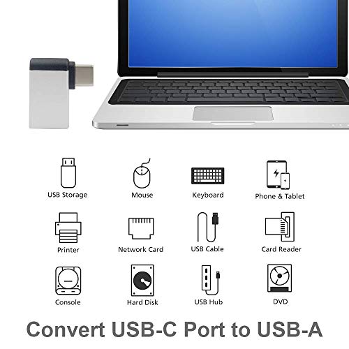 Duttek Adattatore da connettore USB-C 3.1 Maschio a Porta USB Tipo A 3.0 Femmina, ad Angolo retto, per MacBook Apple da 12 Pollici, ChromeBook Pixel e Altri dispositivi con Porta USB Tipo C Silvery