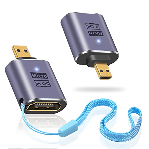 Duttek Adattatore da 8K Micro HDMI to HDMI, Design con LED e Fori, Supporto 8K@60Hz, 4K@144Hz, HDMI to Micro HDMI(2 Pack)