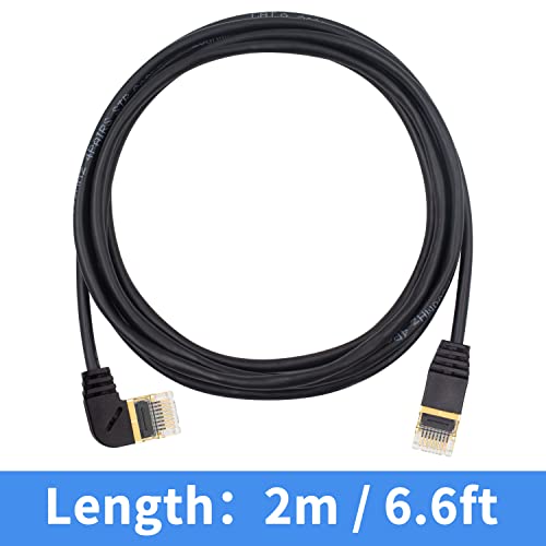 Duttek Cavo Ethernet Cat8, 40 Gbps 2000 Mhz, ad angolo retto, cavo Ethernet RJ45, con testa placcata oro, connettori RJ45, Ethernet, per laptop, interruttore, desktop, 2 m