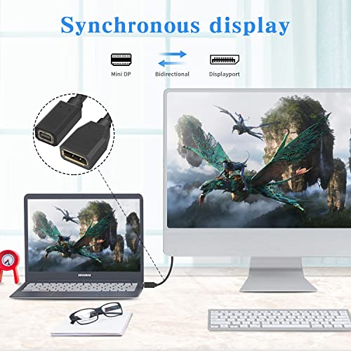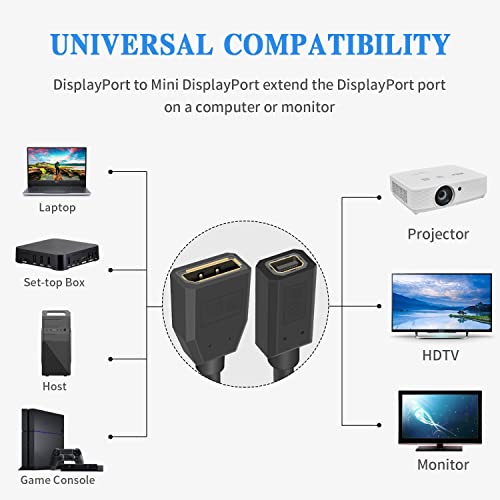 Duttek Mini cavo da Displayport a Displayport 1.4a, 8K@60Hz Mini Displayport femmina a Displayport femmina cavo di prolunga bi-direzionale da trasmissione, Displayport a Mini Displayport (0,3M)