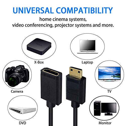 Il cavo adattatore Mini HDMI a HDMI converte i tuoi dispositivi con una porta mini HDMI, come laptop, videocamera, fotocamera o persino tablet su TV, monitor o proiettore con porta HDMI standard.