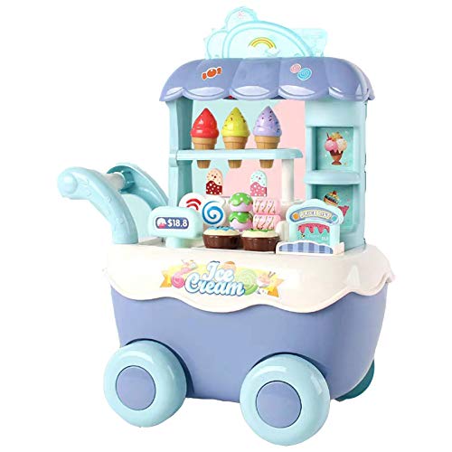 DUTUI Carrello per gelato per bambini, carrello per caramelle e supermercati, per la spesa, giocattolo per la cucina, giocattoli educativi, blu