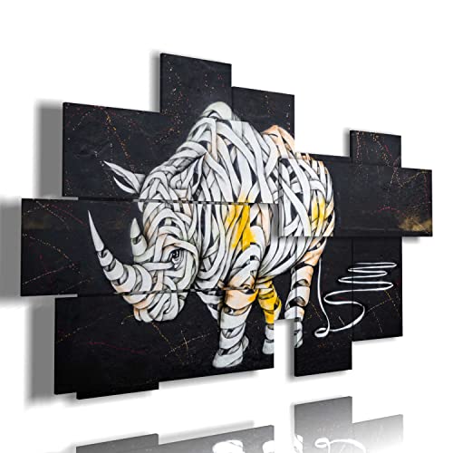 Duudaart quadro rinoceronte moderno e multilivello 3d quadri moderni animali astratti stampa da parete per soggiorno e camera da letto