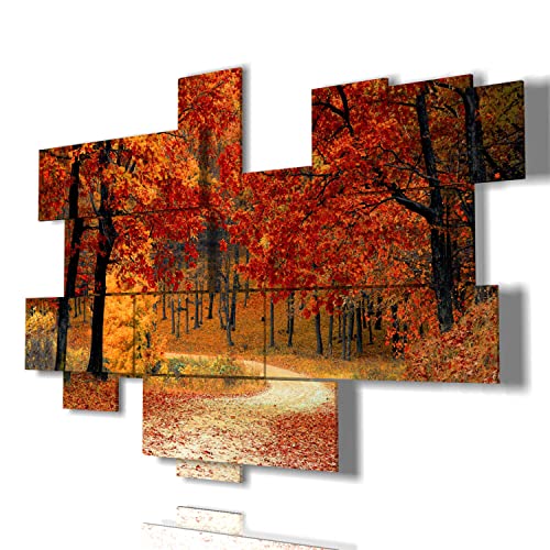Duudaart Quadro Sentiero Moderno 3D multilivello Quadri Moderni Bosco Foresta Autunno Foglie Albero