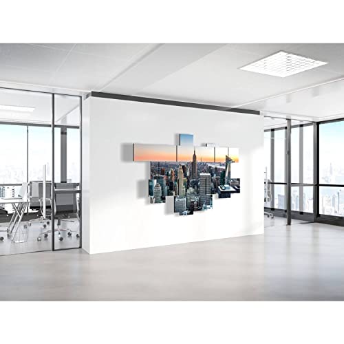quadro moderno New York con vista dall alto é un quadro moderno tridimensionale composto da 16 pannelli. Dimensione totale (LxHxS): 236cm x 146 cm x 5.6 cm. (7 verticali 9 orizzontali)