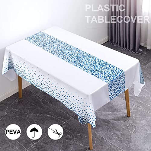DUUFUN Tovaglia usa e getta, 5 pezzi, impermeabile, per compleanno, a pois, adatta per feste, compleanni dei bambini, matrimonio, Natale, 137 x 274 cm, bianco e blu