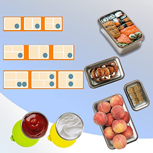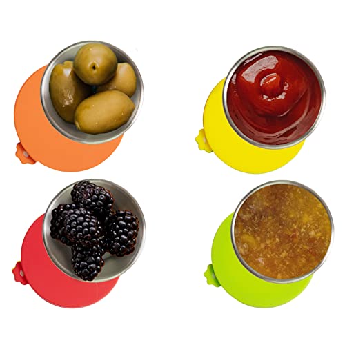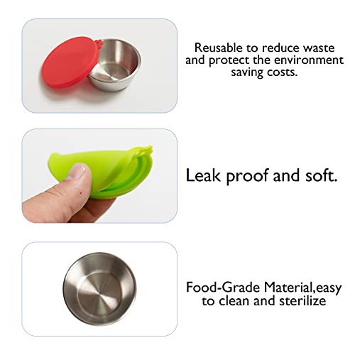 Set di contenitori per alimenti piccoli per uso versatile: Questi contenitori per snack in acciaio inossidabile possono essere utilizzati per tutto ciò di cui hai bisogno. Mini contenitori per lo svezzamento, adatti per salsine, salse e alimenti per neonati o altri oggetti piccoli. Come salse, condimenti, pezzi di frutta, crema di formaggio, semi di girasole, mirtilli secchi e noci.