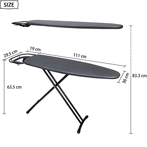 Duwee Asse da Stiro 36x111 cm con Poggia Ferro Retrattile, Asse da Stiro Pieghevole Regolabile in Altezza, Fodera Resistente al Calore con Feltro Spesso,Nero