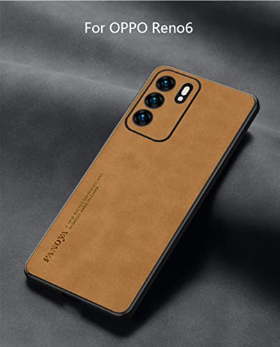 Duxsmei Cover per Oppo Reno 6 5G Custodia in Pelle Scamosciata PU e TPU, Anti-Shock Anti-Graffio Anti-Scivolo Ultra Leggera Cover di Lusso per Oppo Reno 6 5G, per Uomini Donne(Marrone)