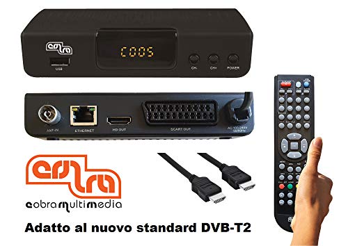 DVB-T2 Decoder COBRA mod. DINGO-Lite, Digitale Terrestre H.265/HEVC, Mediaplayer, cavo HDMI incluso, Telecomando di grandi dimensioni con Autoapprendimento