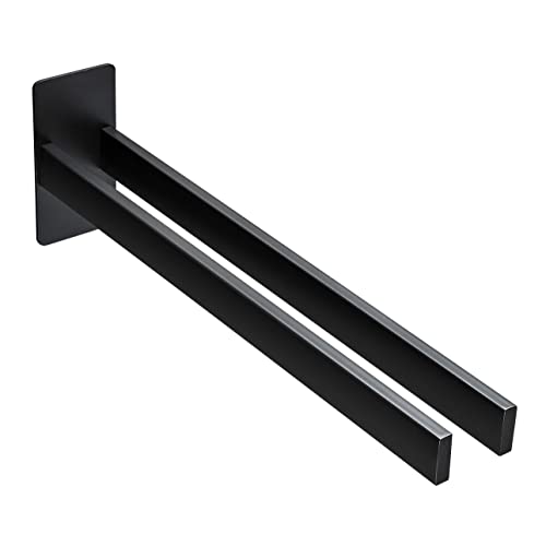 Dvocel Portasciugamani Adesivo da Parete in Acciaio Inox Porta Asciugamani Senza Forare Porta Salviette 2 Bracci per Cucina da Bagno Nero Opaco
